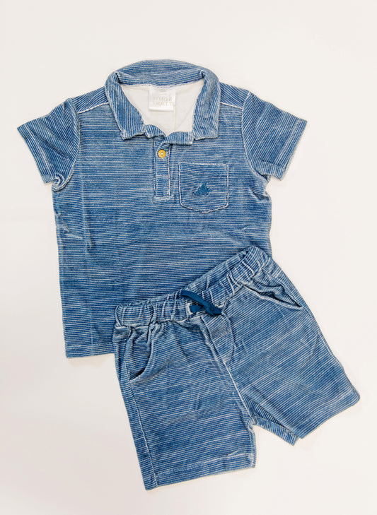 French Terry Polo - Misty Blue Stripe