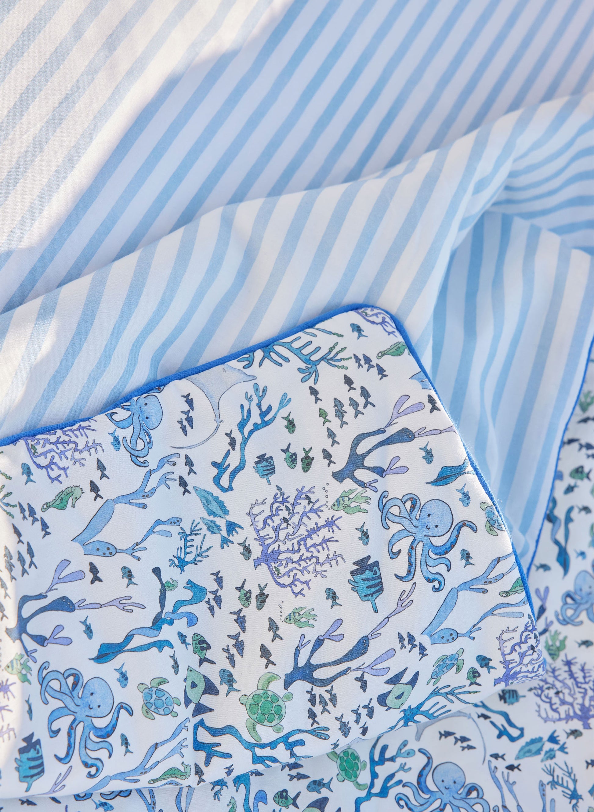 Dreamy prints meet soft, cooling fabric. We spent over six months testing fabrics to find the softest and silkiest bedding fabric that is also eco-friendly and free of harmful chemicals. Our reversible crib quilt is silky soft, lightweight and breathable, making it appropriate for any time of the year. It is also designed to fit any standard size crib and toddler bed, as our intention with our entire collection is to offer "fewer, better" products that are timeless when it comes to both design and functionality.