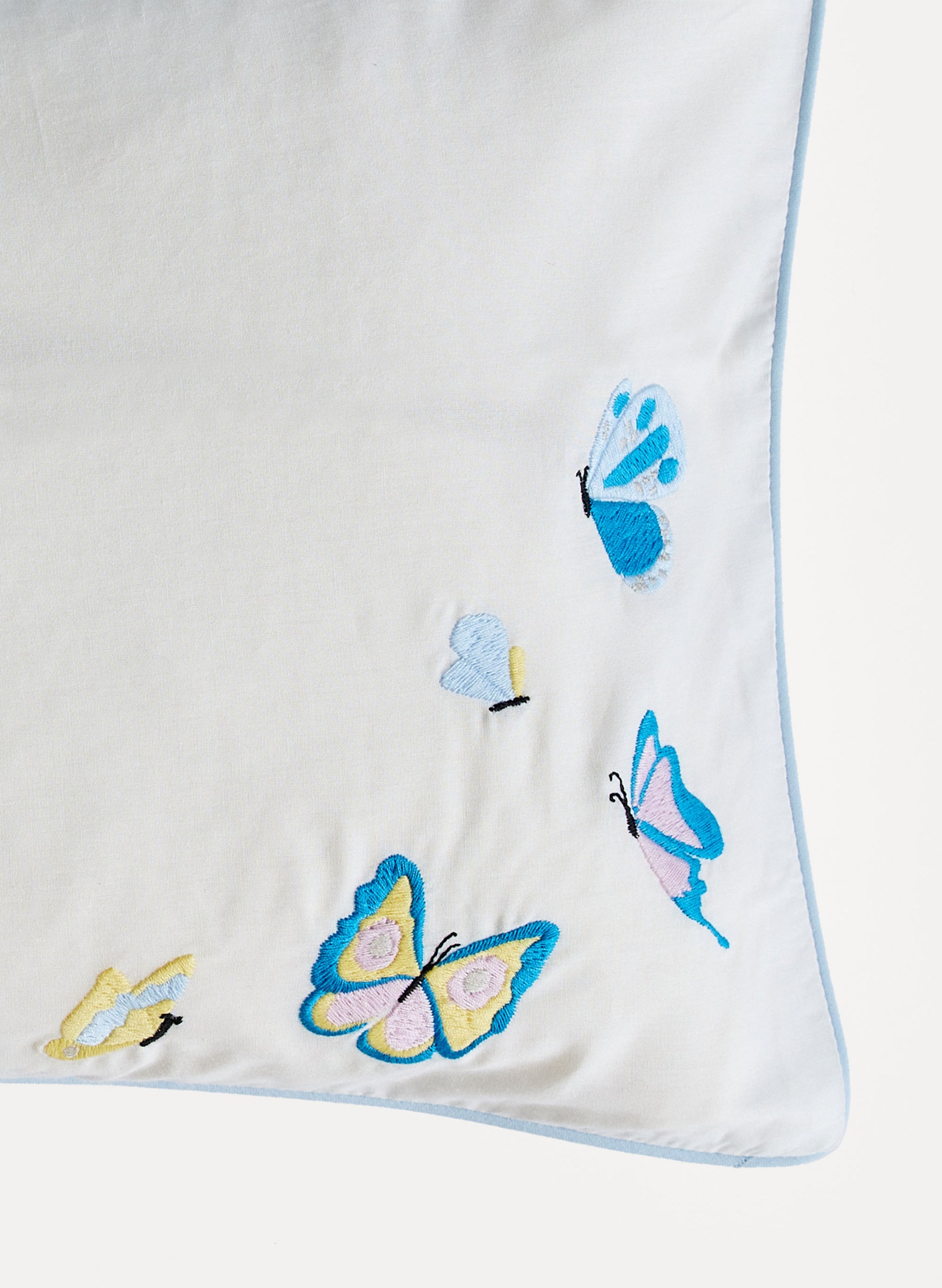 Dreamy prints meet soft, breathable fabric. We spent over six months testing fabrics to find the softest and silkiest bedding fabric that is also eco-friendly and free of harmful chemicals. Our toddler pillow case has beautiful embroidered butterflies on one side, and can be easily monogrammed.