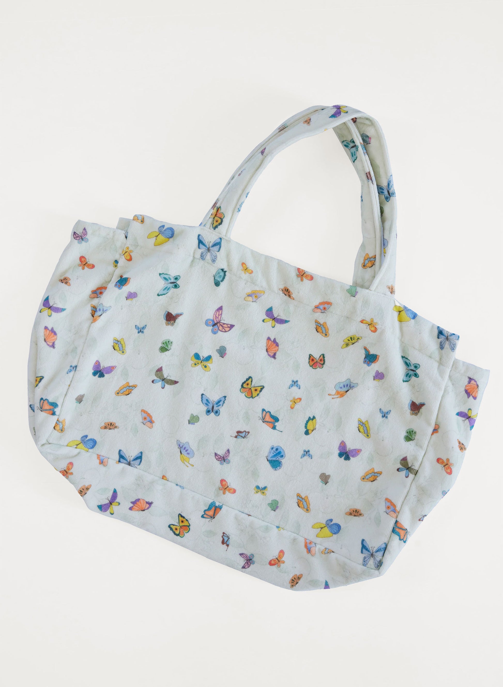 This Madame Butterfly tote is the perfect accessory for a day at the beach. Its spacious design allows for easy storage of all your beach essentials. With durable materials and stylish design, this bag is both practical and fashionable.
