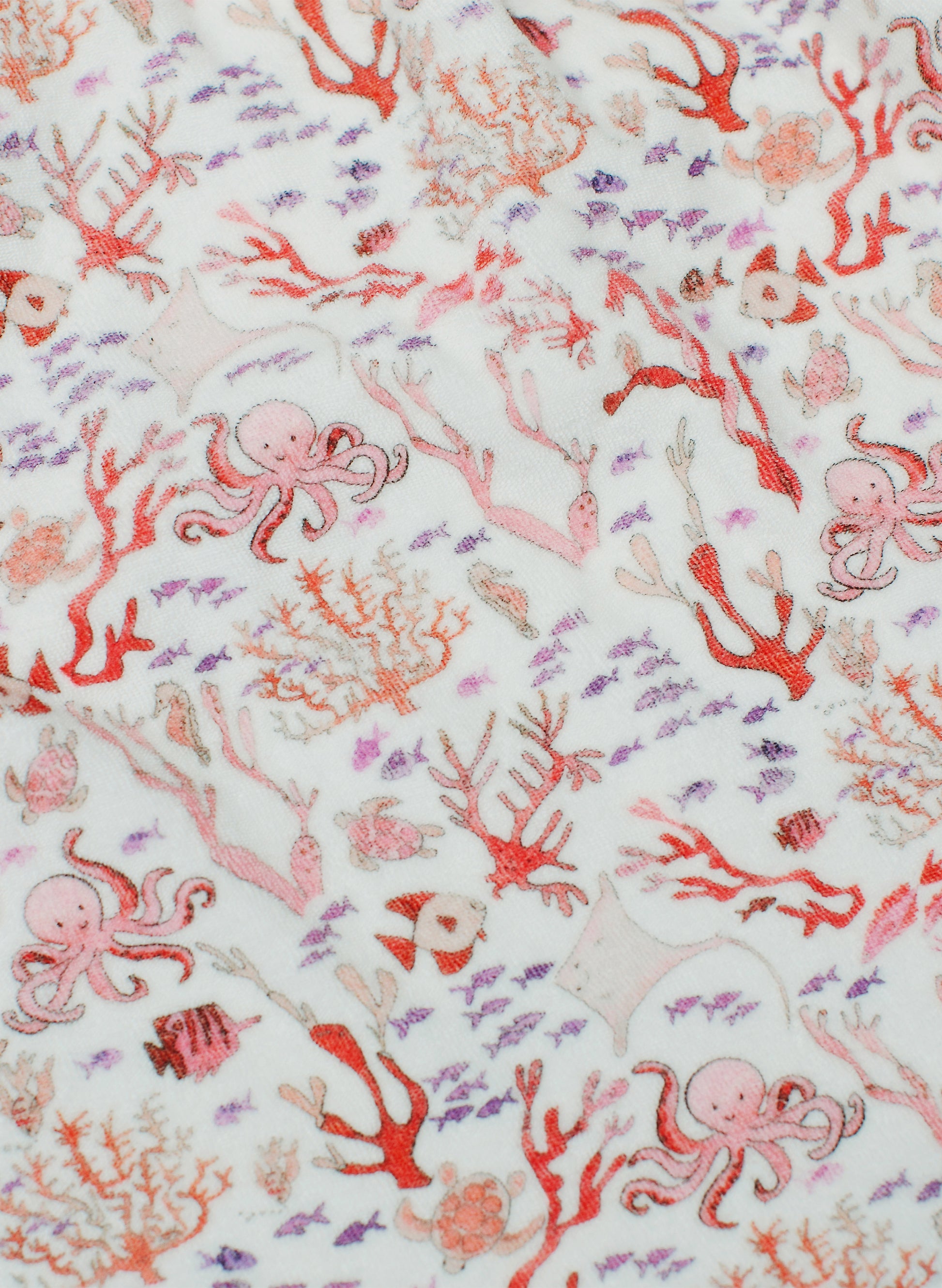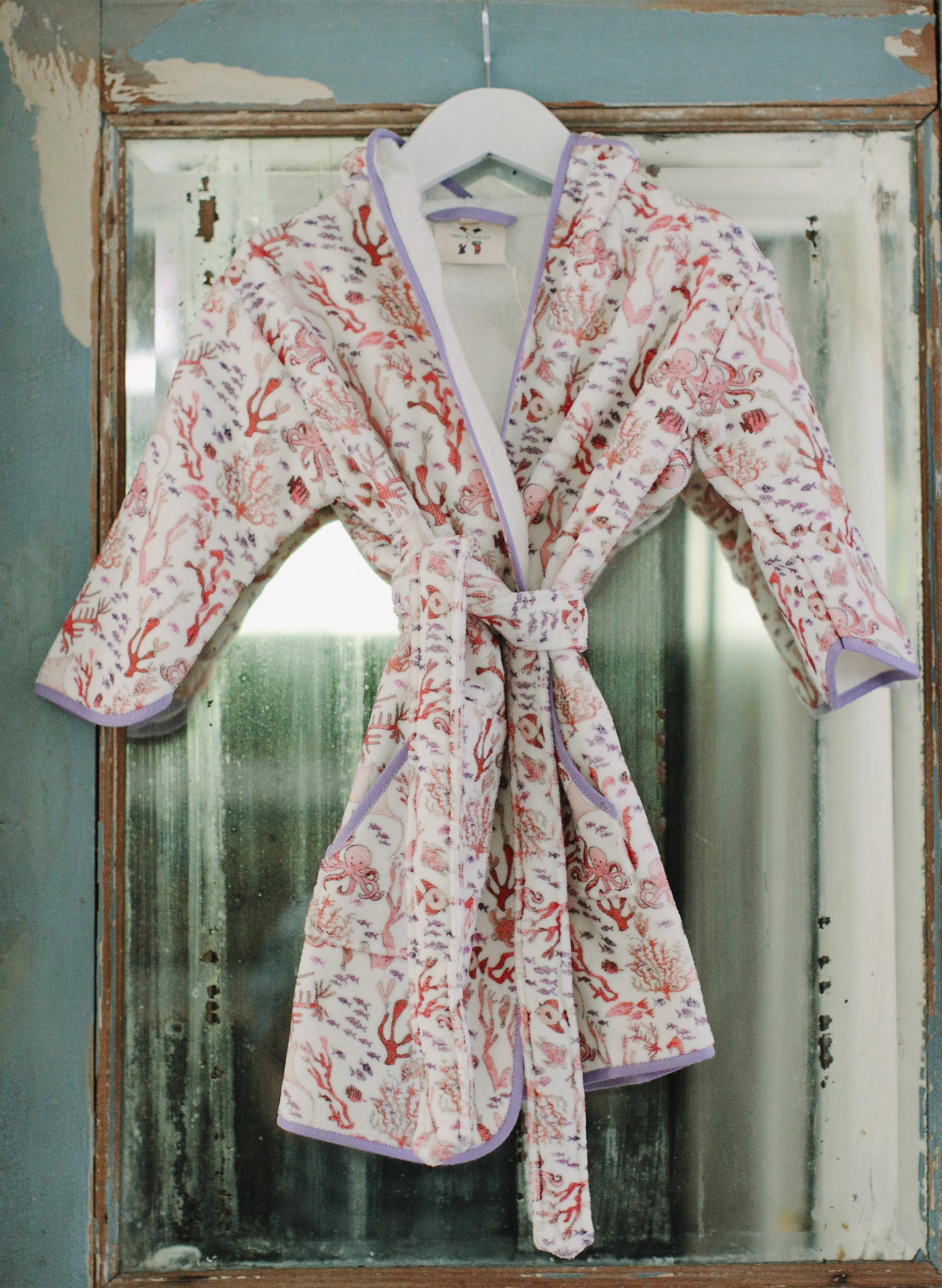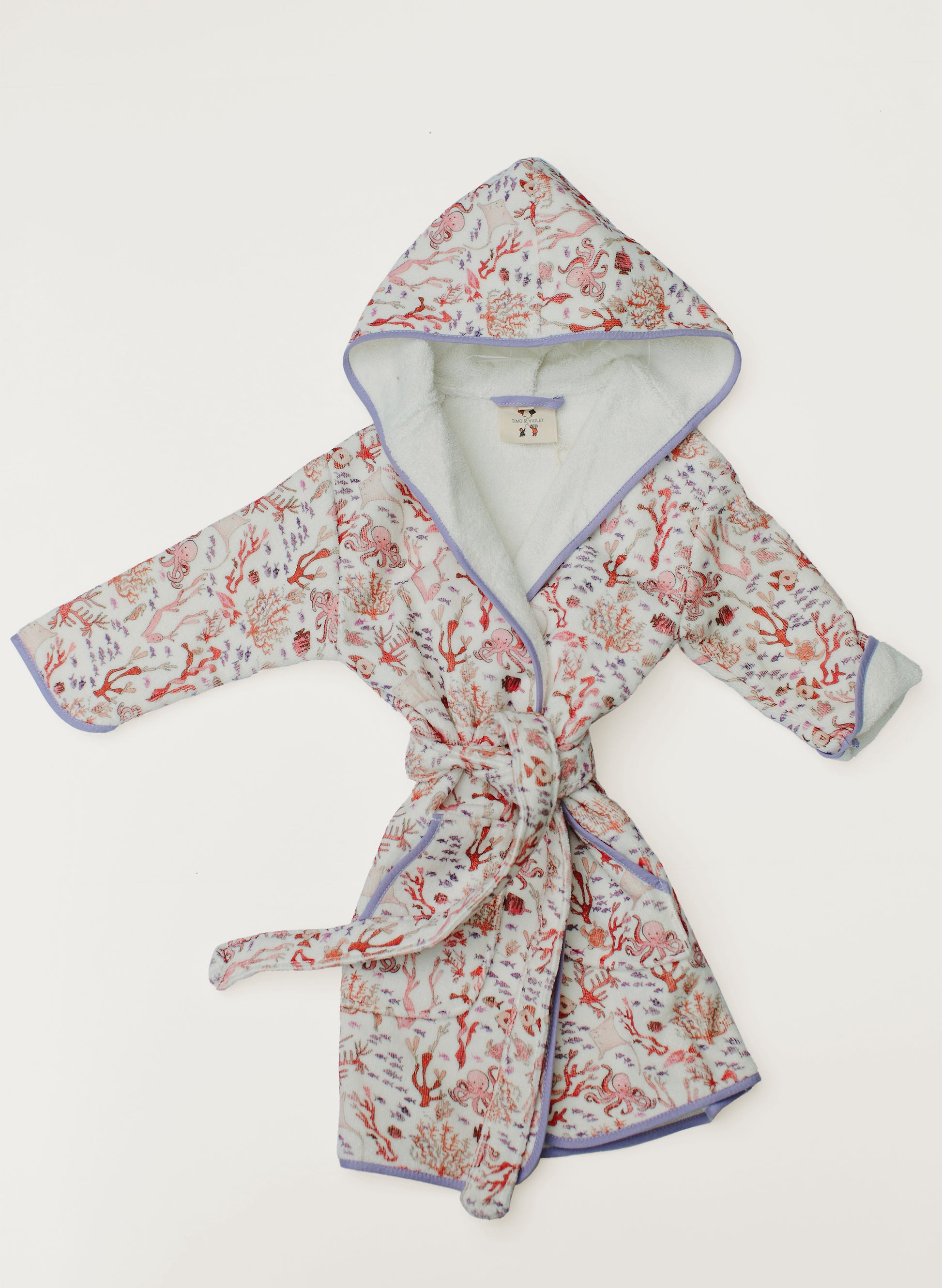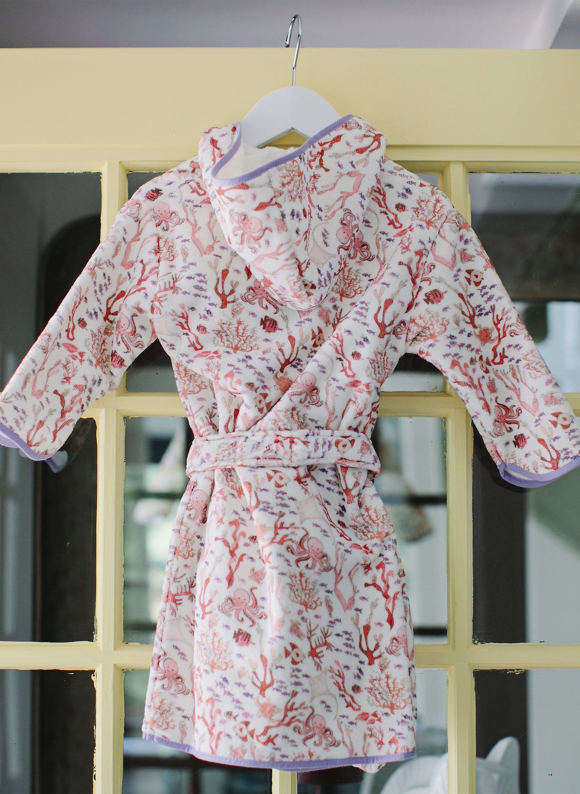 Get super cozy! Made from our ultra-soft velour cotton terry and printed in our newest Rosy Coral Reef motif, this robe is one your little one will never want to take off—perfect for playtime, mealtime, or winding down before bed.