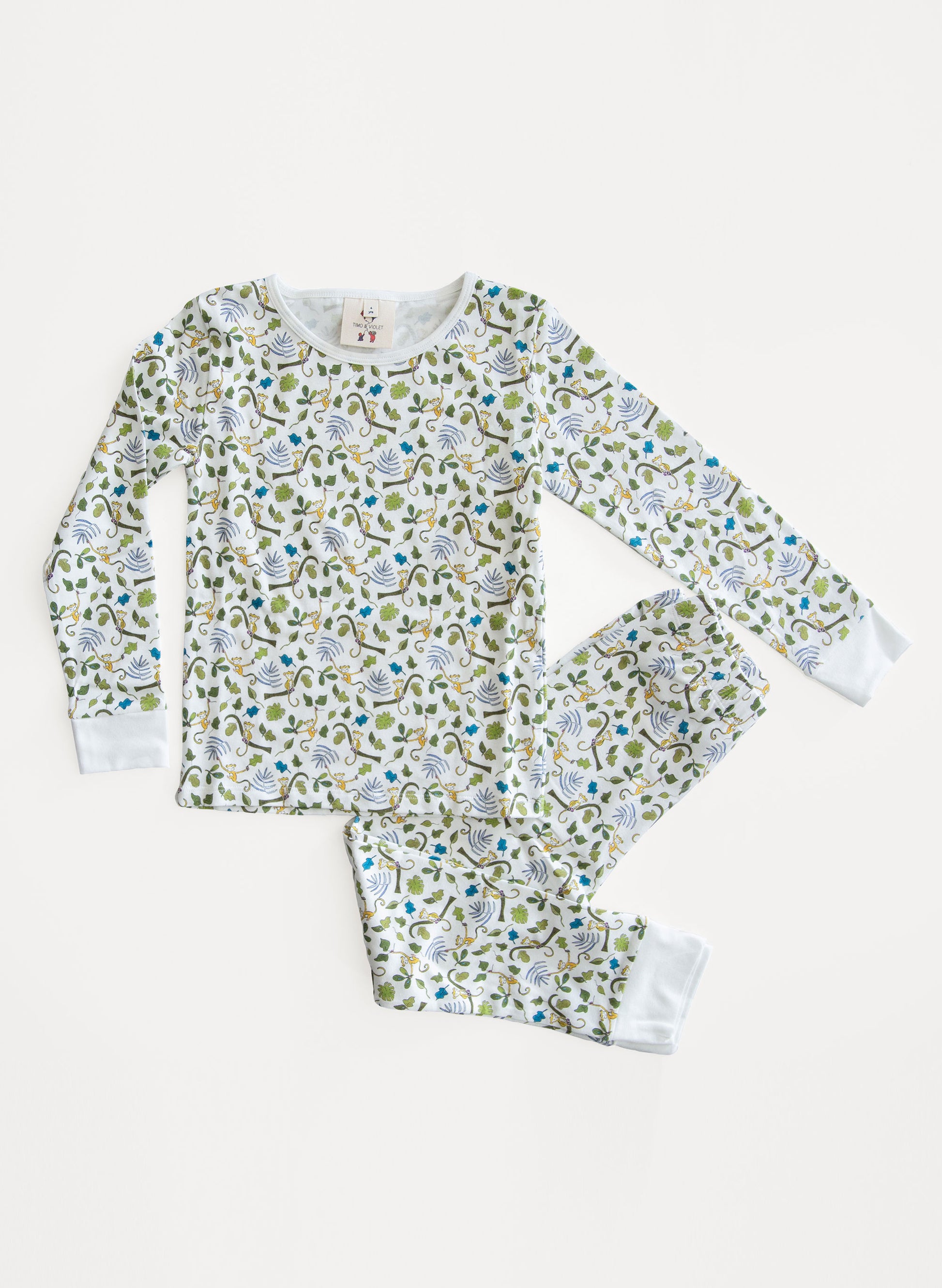 Made from 95% GOTS certified organic cotton with a touch of stretch (5% spandex), this set is soft, breathable, and perfect for snuggly nights and lazy mornings. Available in sizes 6M to 10Y, it offers a cozy, snug fit—without the use of flame-retardant chemicals.