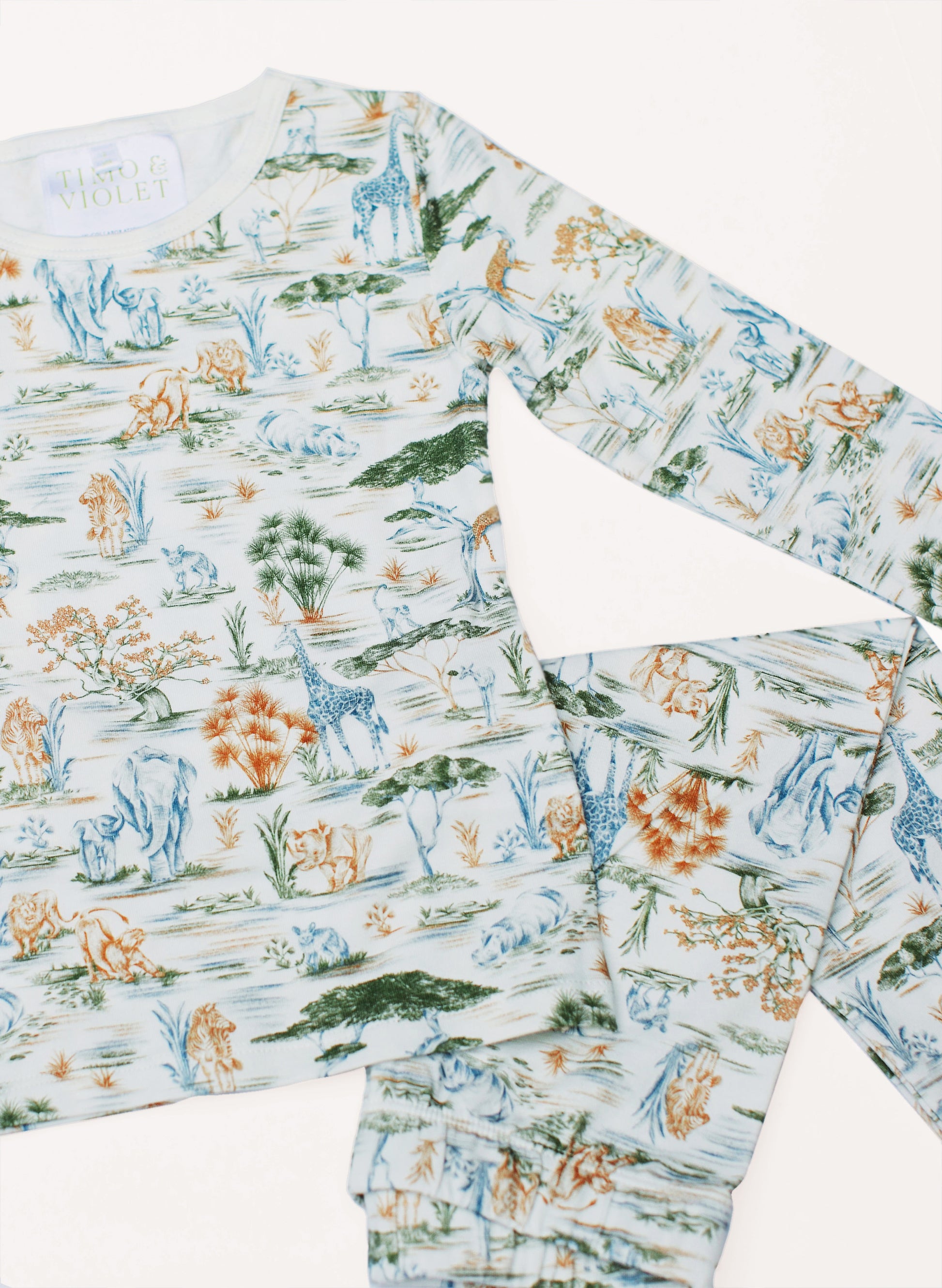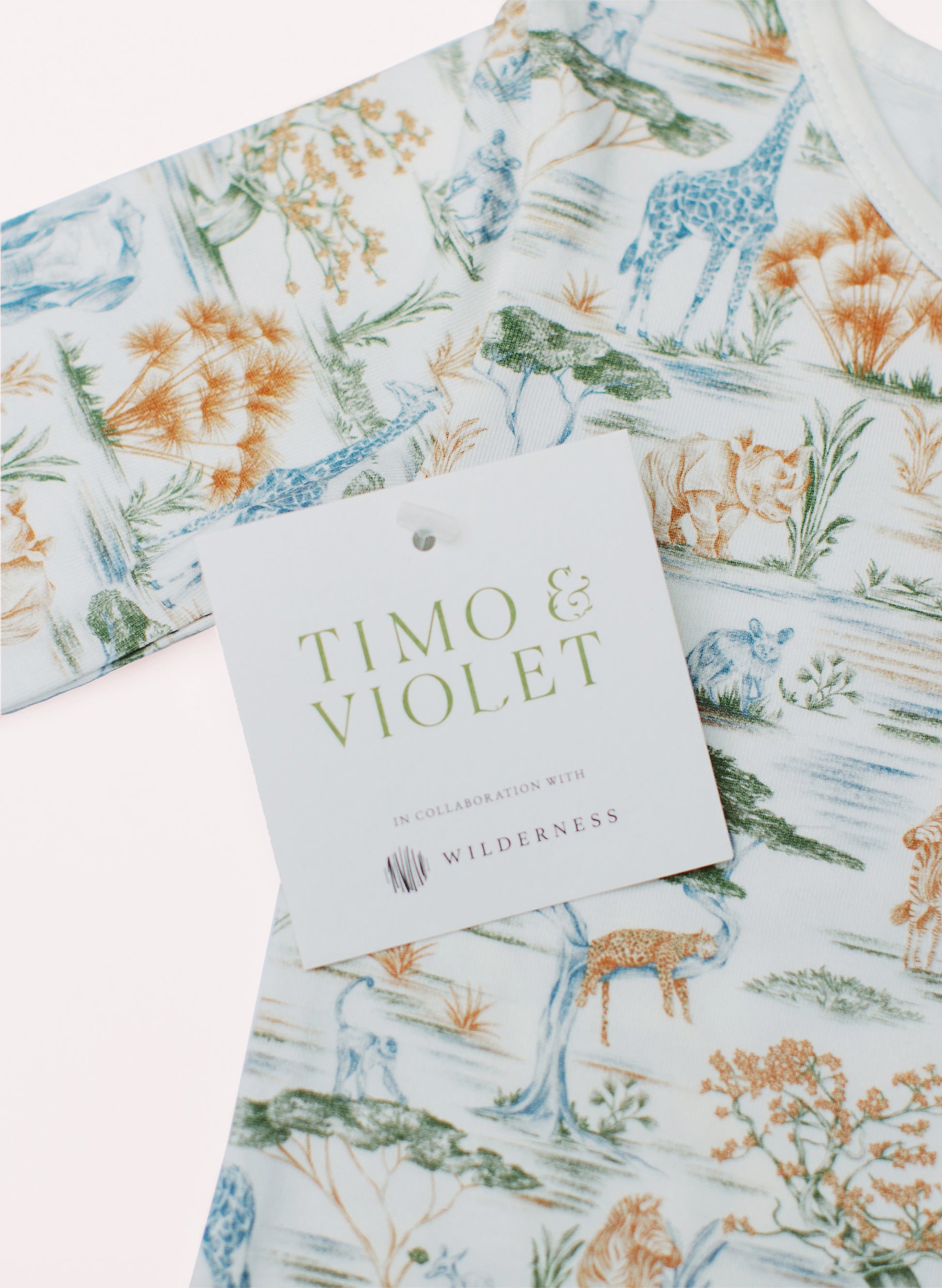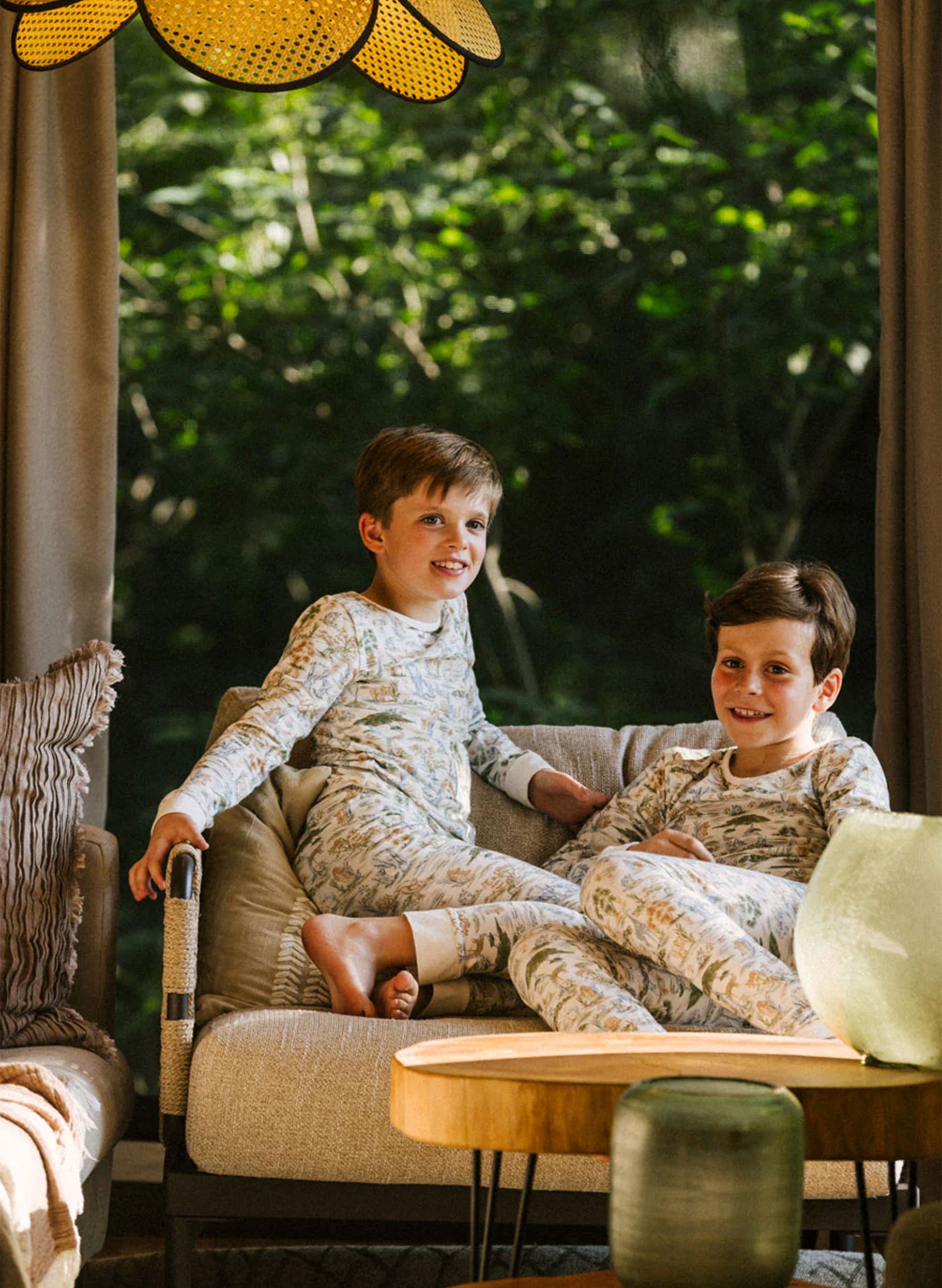 Created in partnership with Wilderness, a pioneering African conservation and hospitality company, this limited-edition pajama set celebrates the spirit of childhood adventure and a deep love for the natural world. Crafted from 95% GOTS certified organic cotton and 5% spandex for gentle stretch, it’s soft, breathable, and made for cozy nights and curious days.