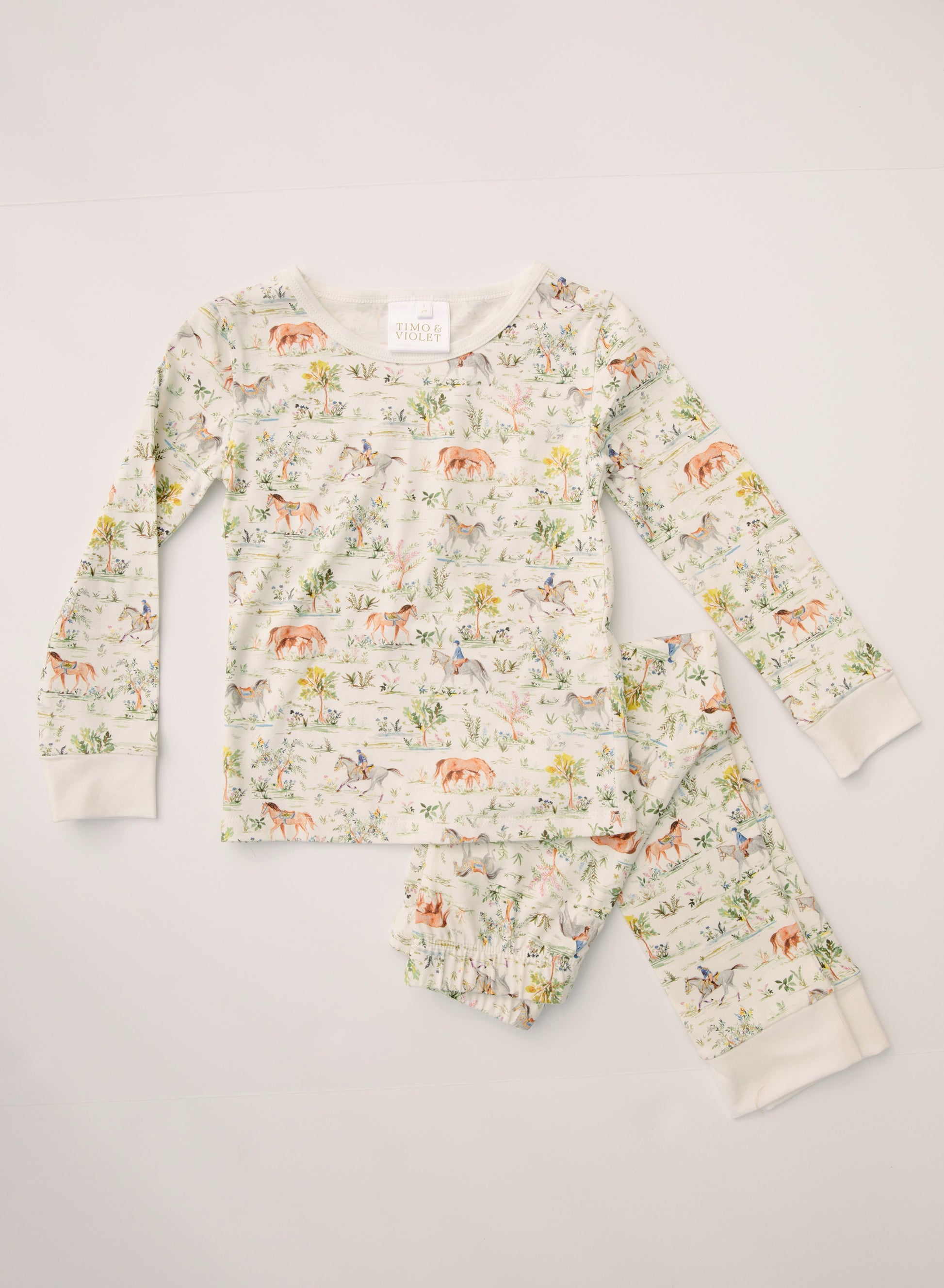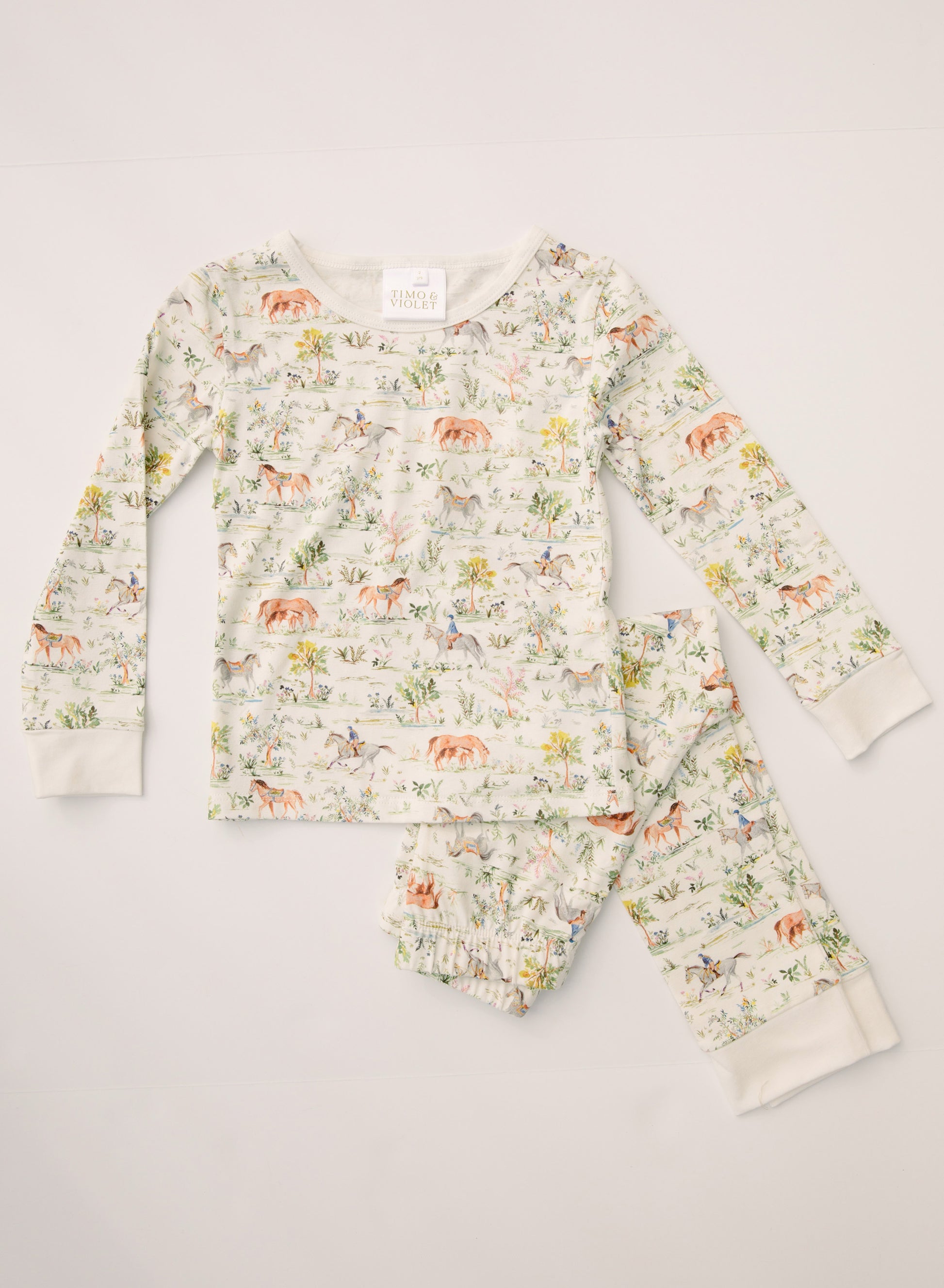 Make bedtime something to look forward to. Our Organic Cotton Long Sleeve Top and Pant Pajama Set is crafted for comfort and designed to delight, featuring our exclusive Hunter Pace print.