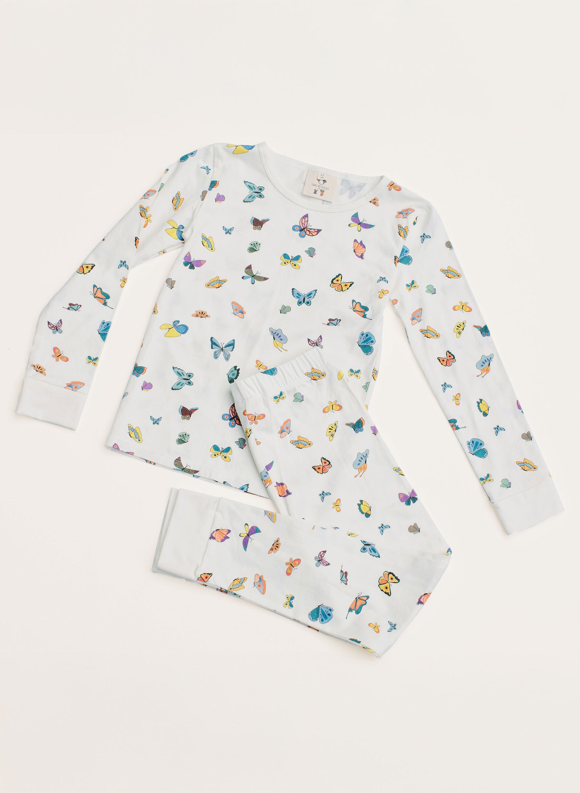 Make bedtime something to look forward to. Our Organic Cotton Long Sleeve Top and Pant Pajama Set is crafted for comfort and designed to delight, featuring our exclusive Madame Butterfly print.