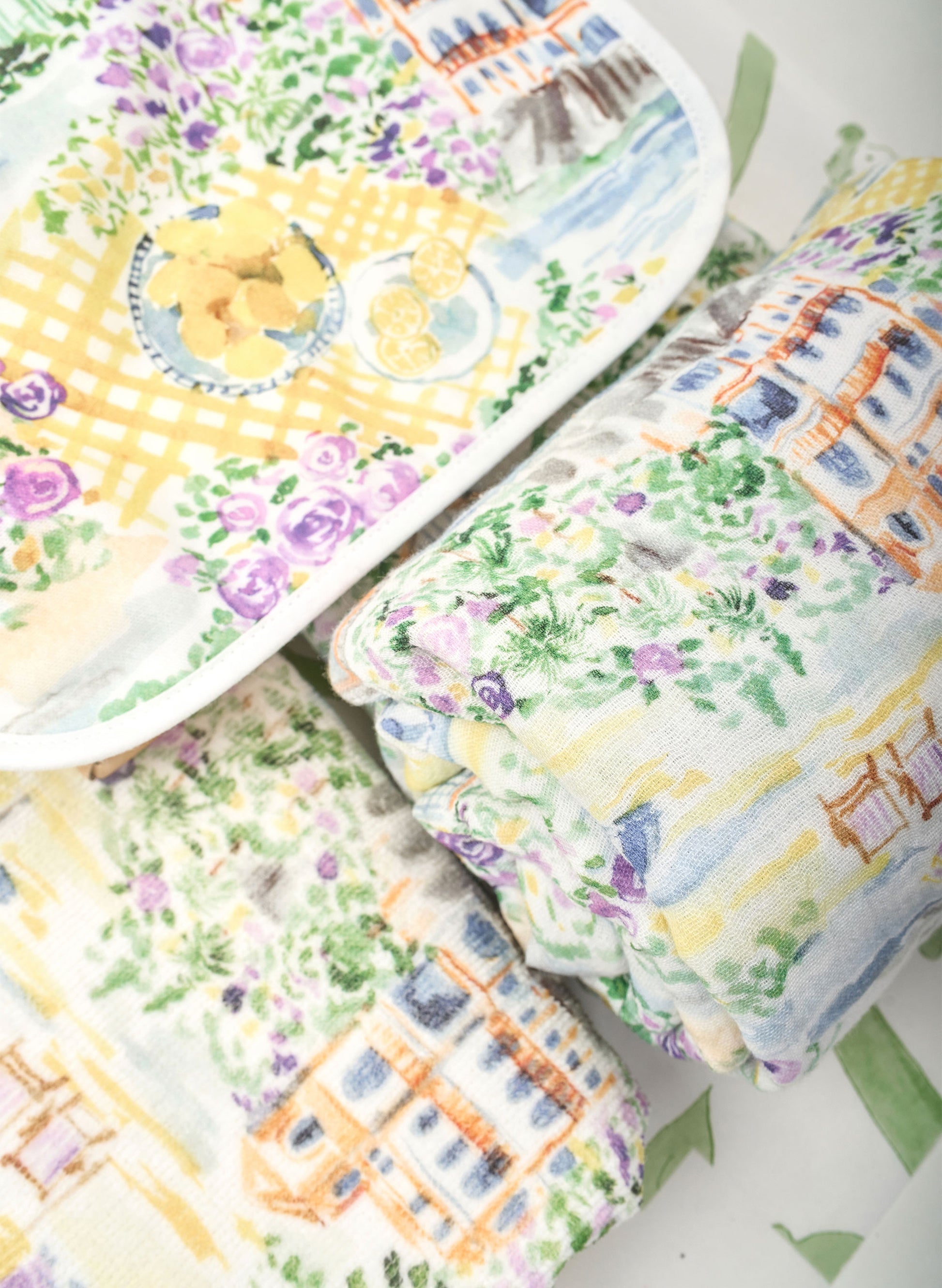 The Perfect Bib is constructed with a buttery soft cotton terry layer on the back and a beautiful printed muslin front, are absorbent yet elegant.