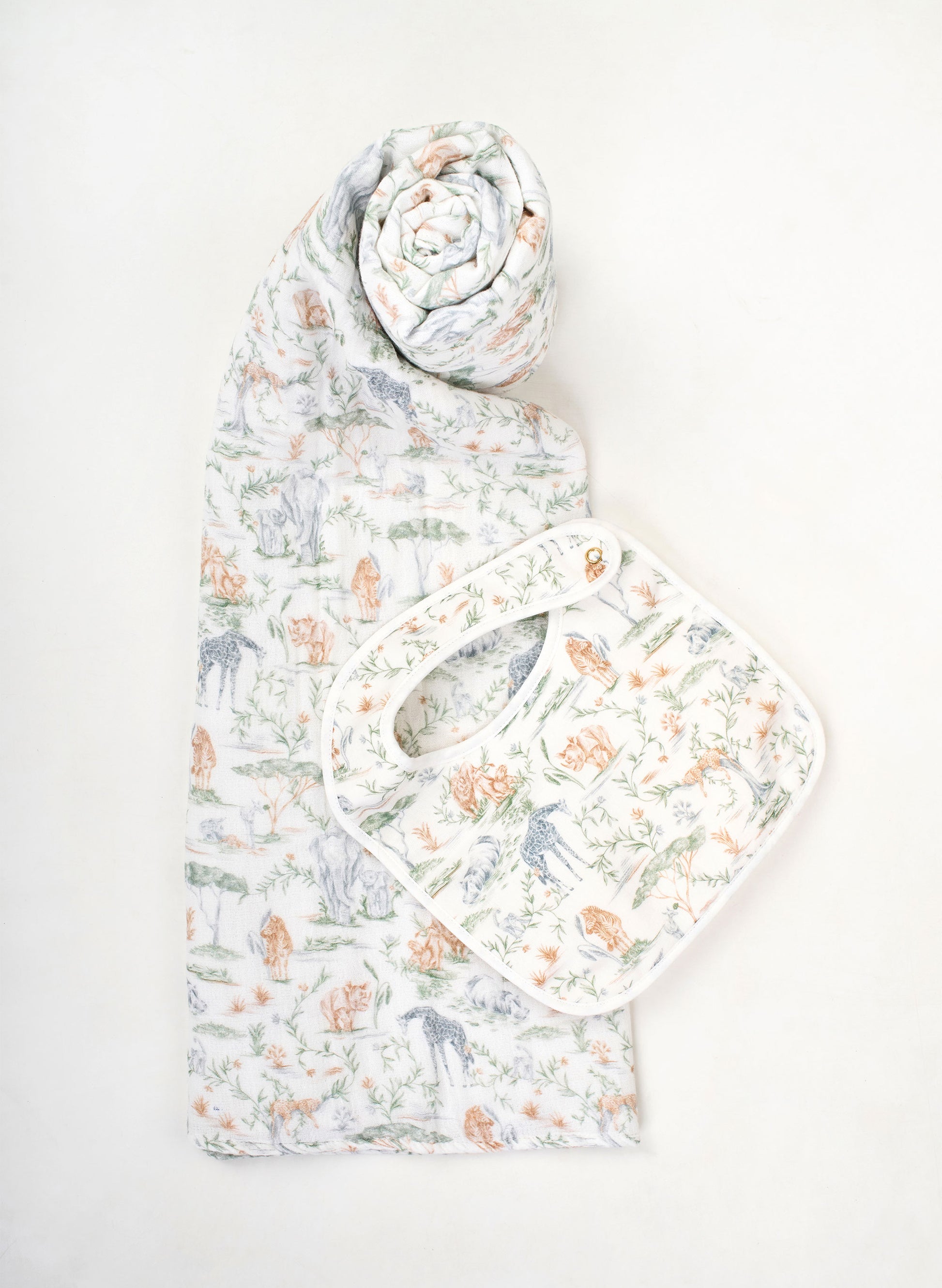 Tummytime Bib & Shawl Blanket Set - Sweet Savanna