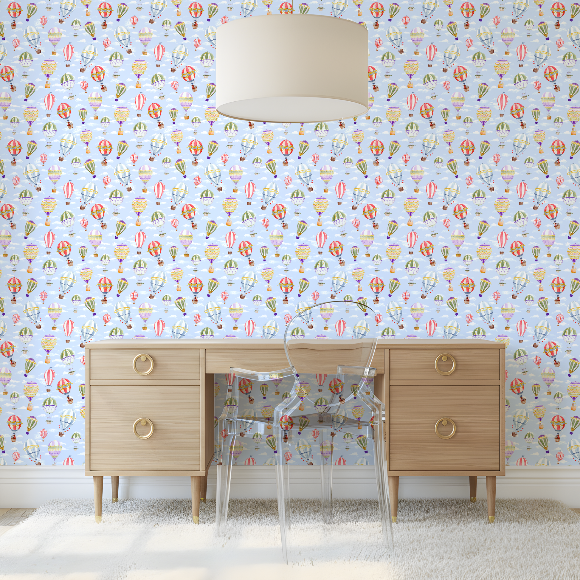 Drift into dreams with this whimsical hot air balloon wallpaper, where charming surprises delight within the design. Available in both of our premium matte or grasscloth paper, each finish delivers a playful choice, perfect for nurseries, bedrooms, or creative spaces for children to wonder and grow.