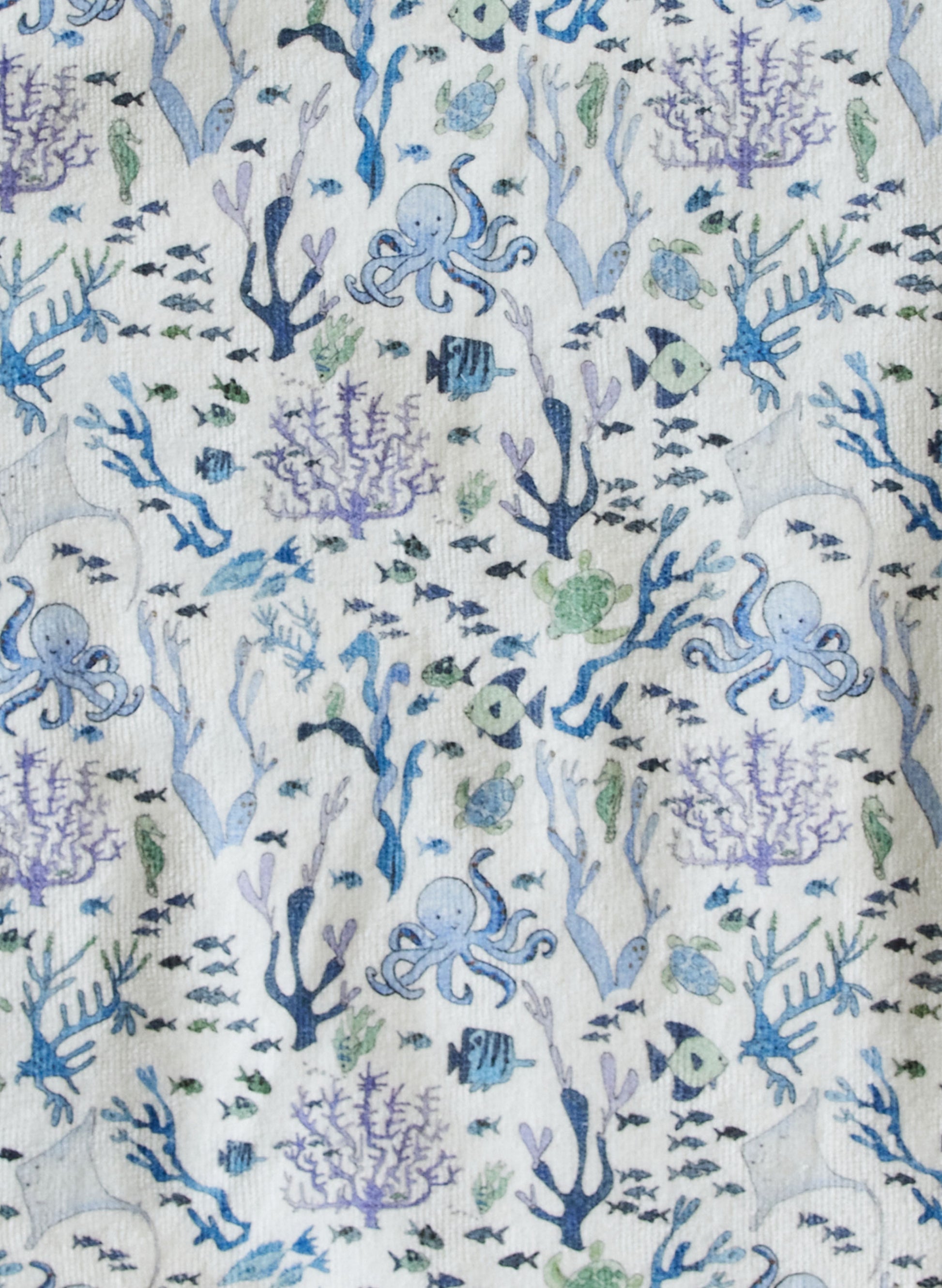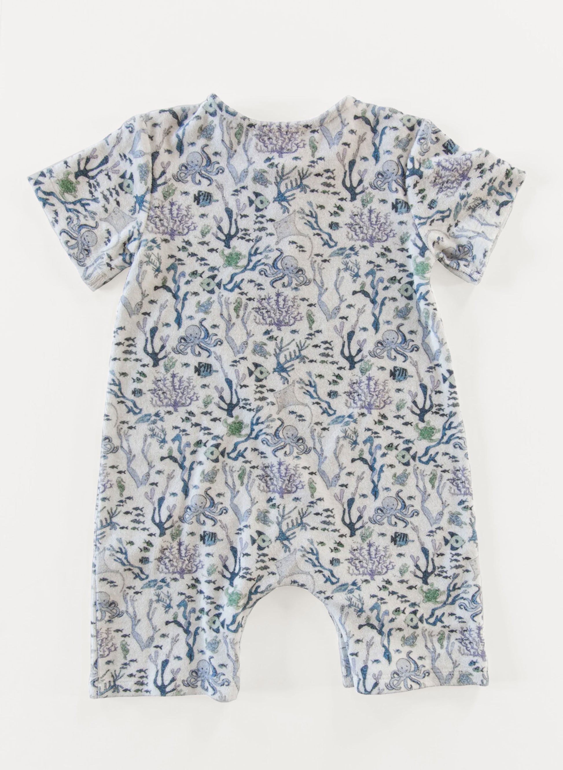 Hop into summer with our Walker terry romper! Made from 100% GOTS certified organic cotton terry, it's the perfect everyday piece in our Coral Reef print. Comfortable, quick drying, and eco-friendly, your little one will be ready for just about anything.
